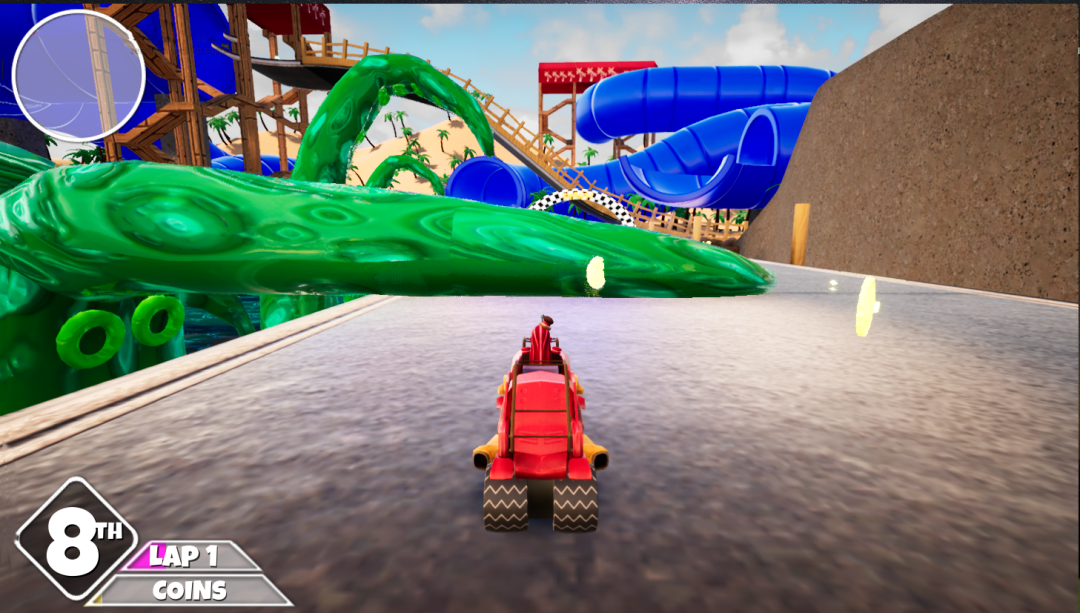 - The goal for Go Go-Karts was to have 3 distinctly themed tracks at release but with our schedule this proved to be a problem