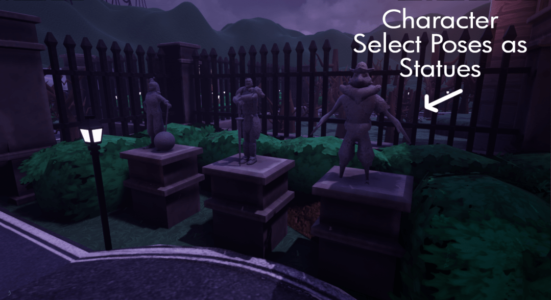 - Various statues throughout the game were built using the posed rigs from the character select screen