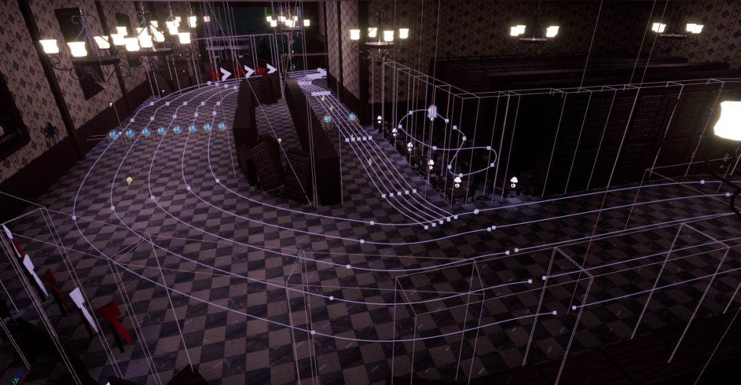 - Using a programmer made spline tool, nodes were placed around the Haunted Track for the AI to follow