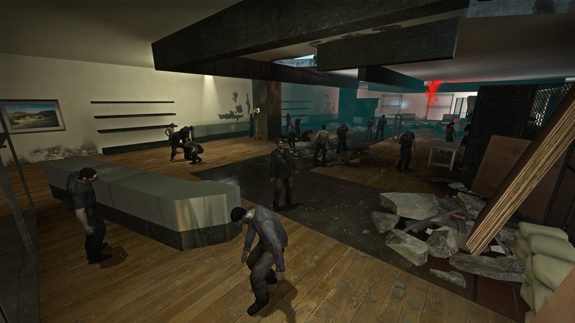 - Crumbling roofs were added to better show off the rooftop setting of the finale level ahead and give infected more dynamic spawn locations