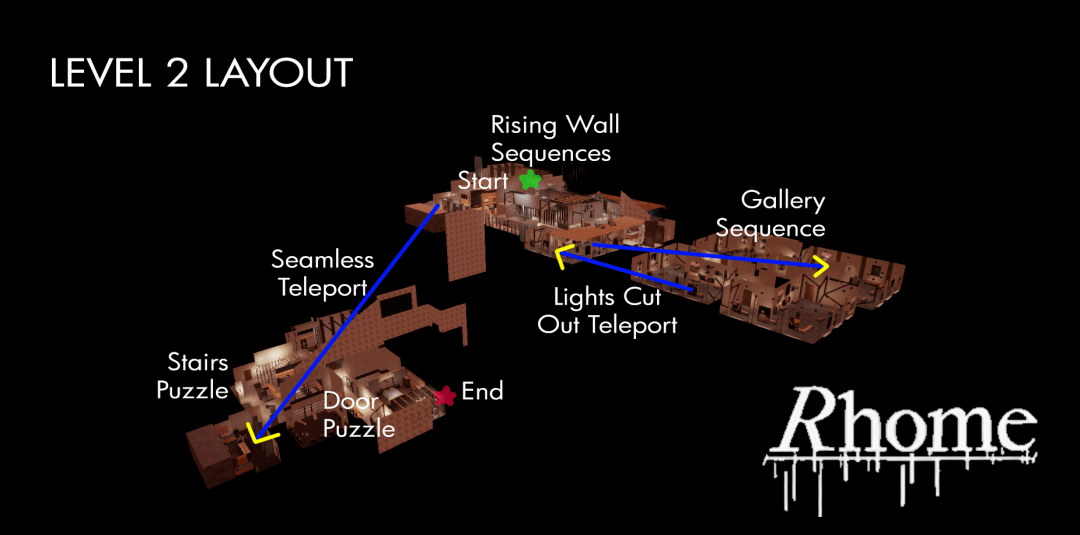 - Within the arc of Rhome, level 2 is the first section of the game where the protagonist’s home begins to shift to represent her unraveling psyche.