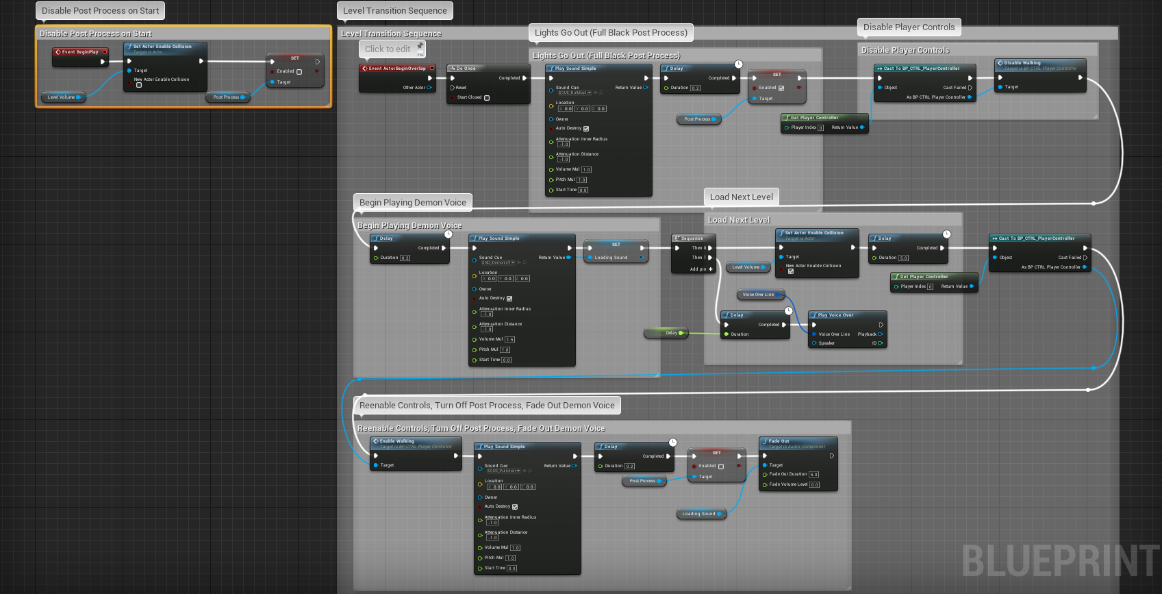 - Learned the level linking system in and out allowing for quick rearrangement of level sections for optimization