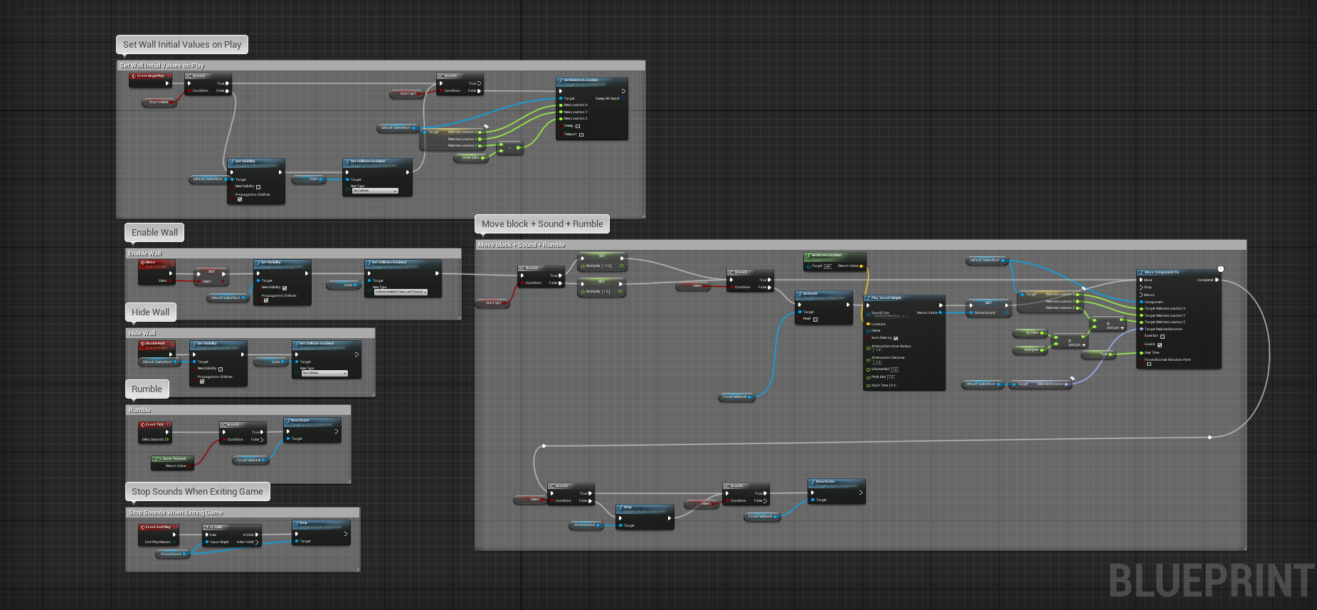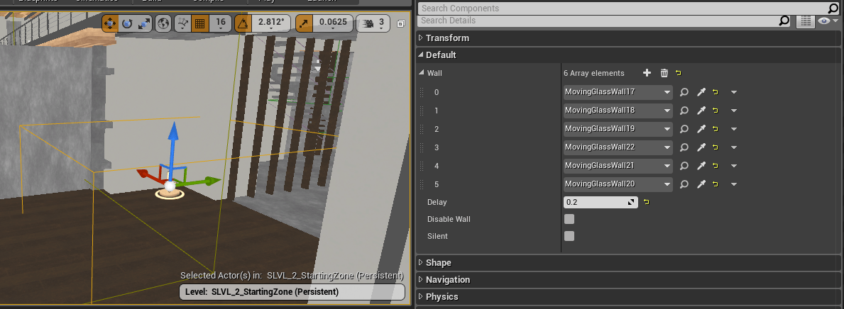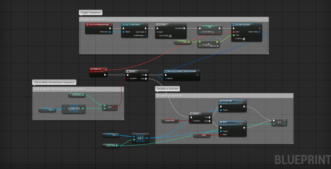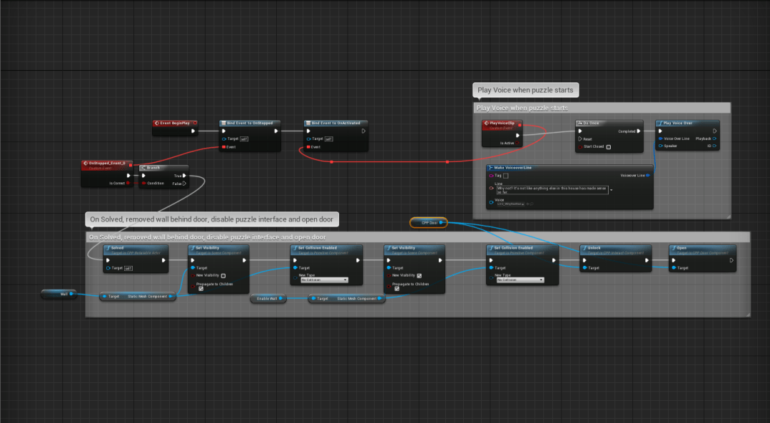 - Once the player lines up the door correctly with the wall its blueprint has it both unlock and open revealing a new path.